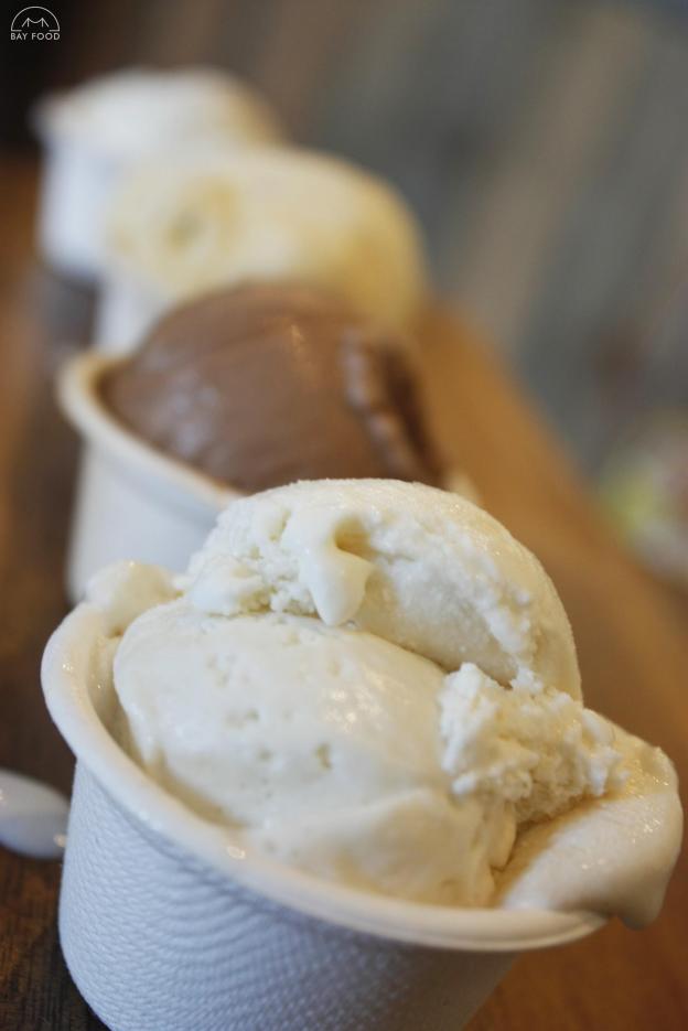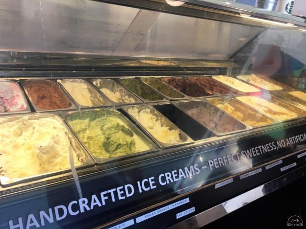 The ice cream though – that’s what sold me on the cafe. They make artisan flavors in house and rotate them. There’s a wide variety of selections, so you have your classic flavors like mint chocolate chip and unique ones like orange cardamom. There also vegan flavors too, so there’s something for everyone.