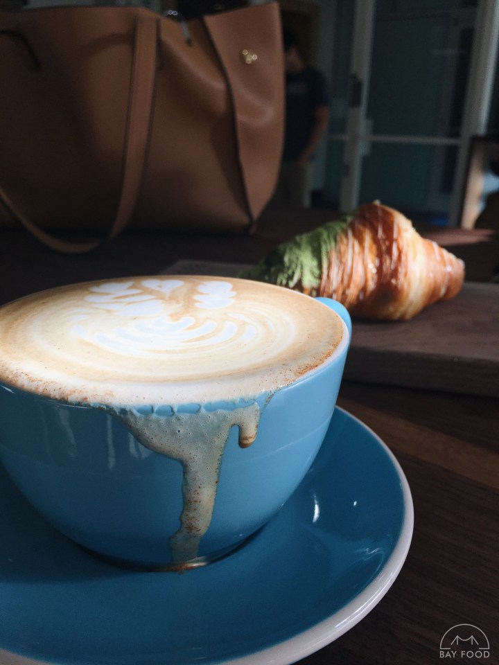 I love the minimal, blue vibe inside. It’s simple but it looks great. There’s so much light coming into the shop throughout the day that it makes it bright and airy. There are some comfortable stools to sit at as well as high tables. I do wish there were lower tables that had chairs with backs but I understand that the intention of this space is to just enjoy your cup of coffee and a have a peaceful moment to yourself. They also have some art hung up around which adds a pop of color.