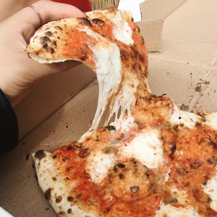 If you think Brooklyn is becoming more hipster and gentrified, then don’t come to Williamsburg. It is the hipsteriest place ever, and this is coming from a Bay native who visits the Mission. But I mean, I gotta do it for the pizza. And I do have some hipster tendencies (sigh). The restaurant was full inside, so we ordered a pie to go and sat outside next door in their garden area. We got the Famous Original, which has tomato, mozzarella, caciocavallo, parmigiano, oregano, and chili. Okay, so this pizza tho. IT WAS DELICIOUS. There were glorious, large chunks of melted cheese dispersed throughout this pizza. Each time we lifted a slice, you would get that oozing string that is cheese as you separate it from the pie. The chili also added a little kick at the end of each bite, which I think gave a new spin to an otherwise classic pizza. It was just perfectly cooked through, and the crust was cooked just right. This was one of those pizzas that have to fold in order to contain everything inside. I’m so glad I made us go.