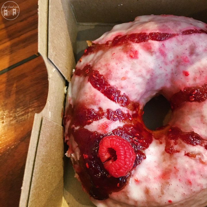 The donut drizzled with raspberry syrup and has a cute, little raspberry on it is the Lemon Raspberry. That came in handy as my breakfast for the next couple of days. It was light and airy and had the right combination of both of the flavors.