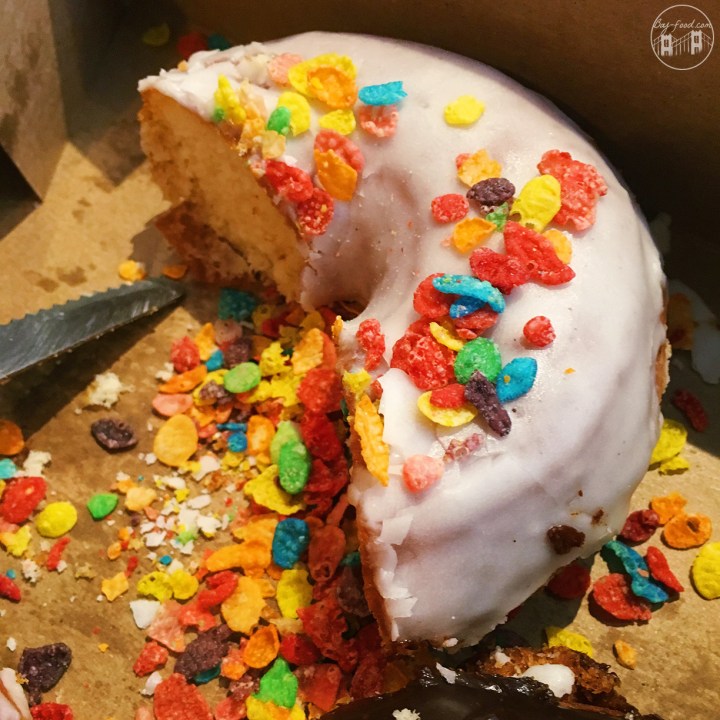 At the very end was the coolest looking donut, Cereal and Milk. I don’t quite know how to describe it, but it really did feel like I was bitting into a bowl of Fruity Pebbles, if that makes sense. Kind of like those cereal bars, but it doesn’t have some strange aftertaste or anything. Just a delicious, cereal-y donut.