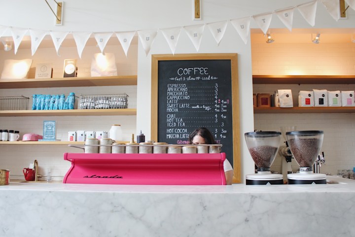 Since everyone needed coffee to get through the day, those of us who were ready decided to make a quick trip to GP to get some breakfast donuts and coffee. The General Porpoise in Capitol Hill is so cute! I love how light and airy it is and the pops of pink, like with their espresso machine and the door! The garage door front is also a really great feature.