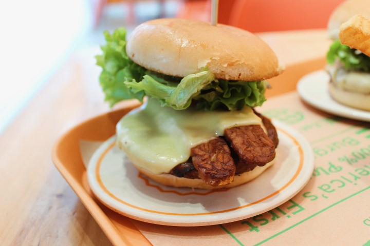 We were both pleasantly surprised! The patty has a lot of flavor and it feels hearty like a meat patty. While I can notice the difference between the patty and meat, I don’t miss the meat patty. The tempeh bacon was pretty good too – although, I’ve never had real bacon, so I could be mistaken, haha. I liked that even though it had these rich condiments like cheese and the special sauce, I didn’t feel weighed down and heavy after inhaling my burger! I’d definitely eat it again.