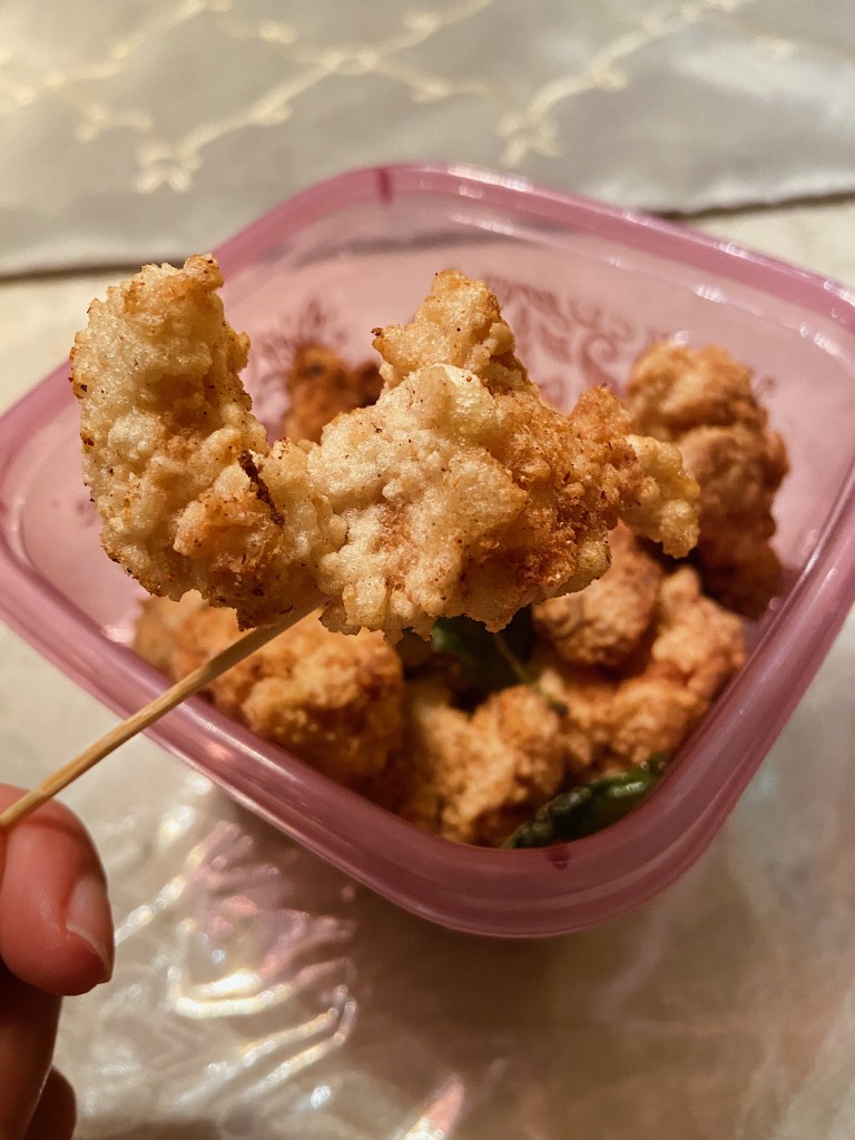 Years ago, my sister and I attempted to make popcorn chicken and it didn’t turn out so well. We had all of the right ingredients, but it didn’t crisp up well or have enough flavor. We put it on the back burner, but since we’re in quarantine, this is prime time for food experiments. We also cleaned out the pantry and found a key ingredient for this snack, so we decided to attempt again. Also, pictures are not up to their usual standard because these were made as an experiment so I took quick photos with my iPhone.