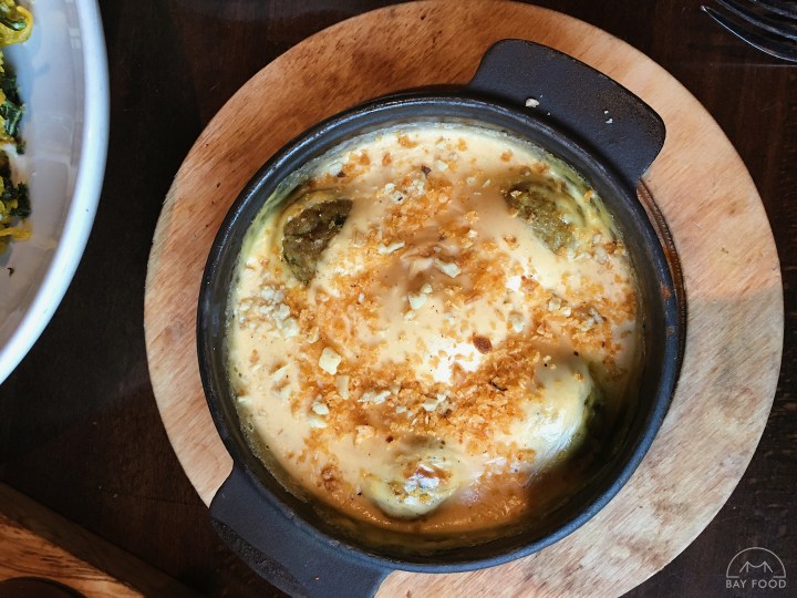 This is the Chicken Malai Kofta, with Amul Cheese, romaine hearts, Caesar dressing, and a walnut crumble. I thought it was interesting to switch out the heavy cream for cheese and pour that over the meatballs. I personally found this dish too salty and it didn’t have as much flavor as I’d hoped. Chicken meatballs have a different (and drier) texture than beef meatballs, so that was also a factor. This wasn’t a bad tasting dish, but it was my least favorite dish. I felt like i was just eating nacho cheese which makes sense because Amul (which is a brand) cheese is a processed cheddar cheese.