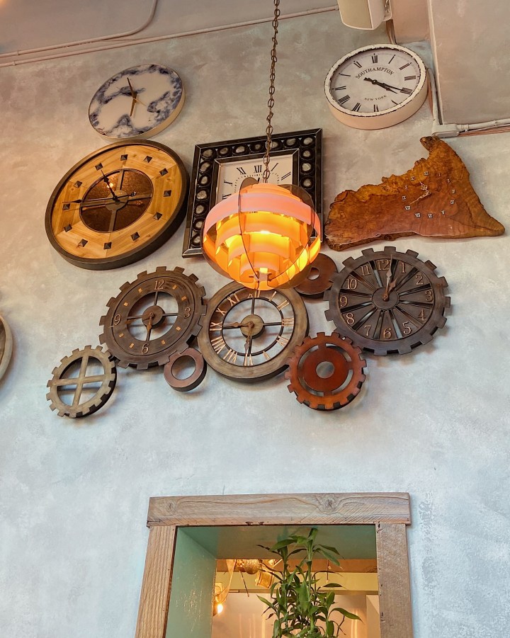 I liked the eclectic vibe of the restaurant with it’s floral decor, intentionally mismatched chairs and the fun steampunk-esque clock wall! I was not expecting that at all when I walked in, so it was cool. They also had a small stage area for a band or a singer to come in and entertain while customers are enjoying their meal.